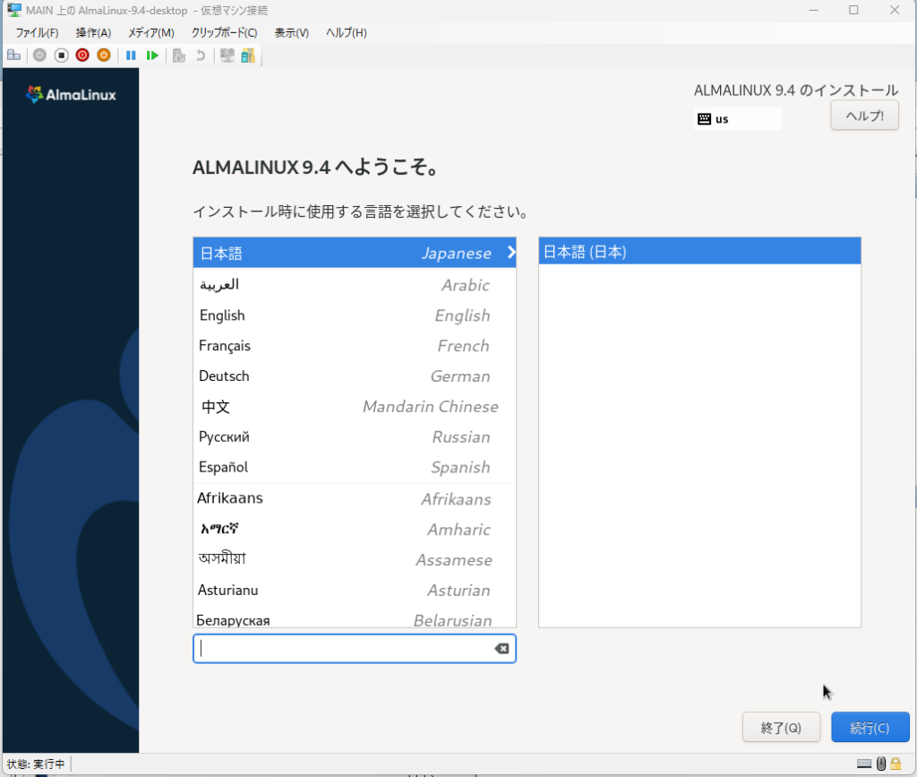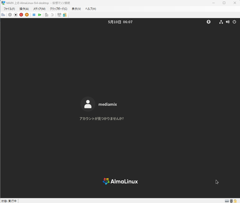 仮想マシン AlmaLinux-9.4-desktop を起動する!