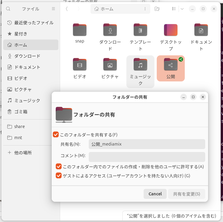公開_mediamixは、ubuntu 上の GNOME で作った共有フォルダだ!